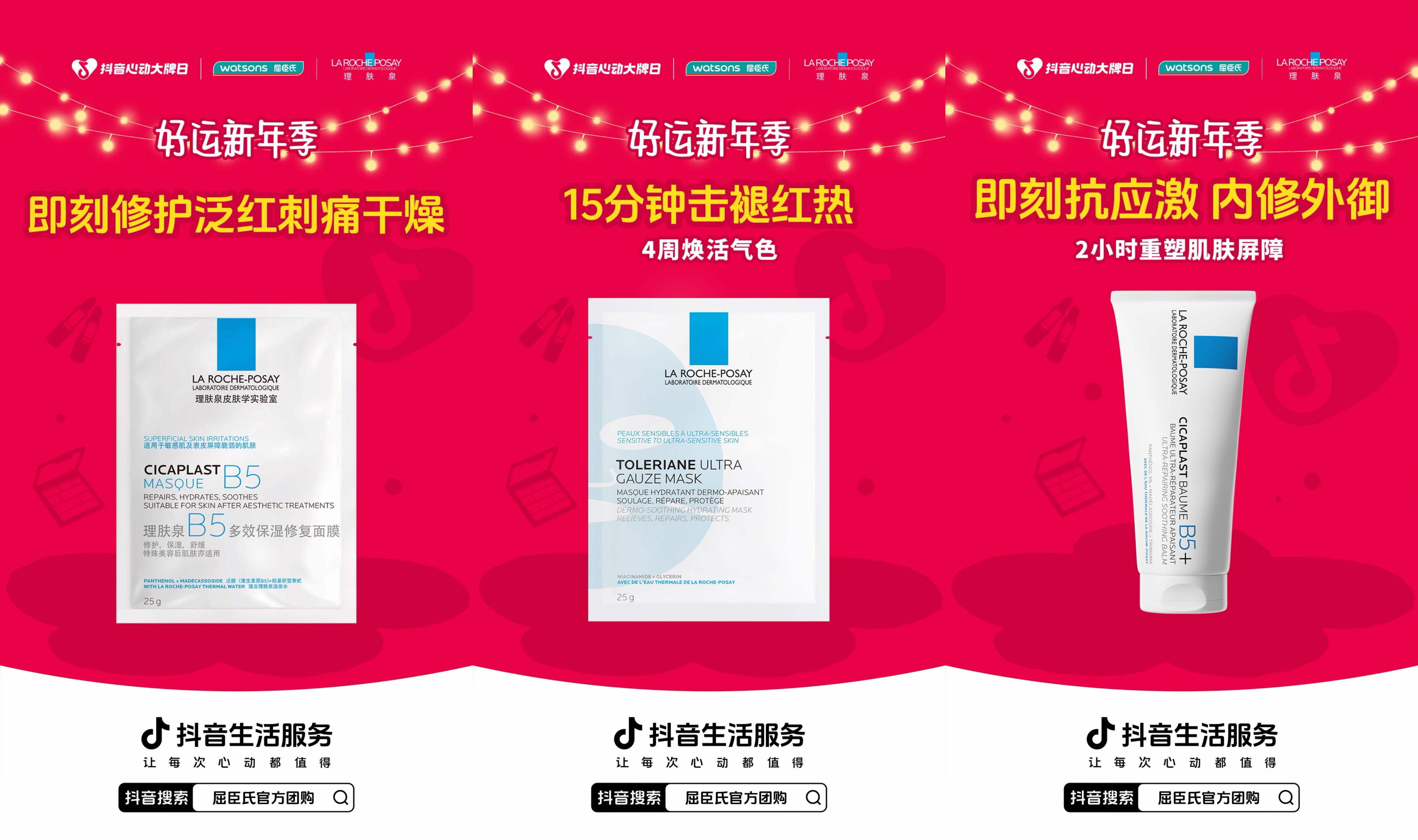 第三重:爆款直降,囤年货就是现在。涵盖护肤、彩妆、个护的爆款单品迎来年度底价,更有理肤泉等口碑修护品牌提供新年“稳”肌选择。例如:理肤泉B5修护套装,包含B5面膜与B5霜,是体验经典修护组合的入门优选;新B5多效舒缓修护霜,主打抗应激,内修外御,2小时助力重塑肌肤屏障,轻松应对季节与环境变化;B5多效保湿修复面膜/特安舒缓密集修护面膜,前者专注修护泛红、刺痛、干燥;后者则能助力焕活肌肤好气色。这些大牌专业护肤好物以活动价入手,让消费者不仅能囤货,更能以高性价比投资一份新年“肌肤安稳”,满足一站式囤齐新年焕新装备的需求。