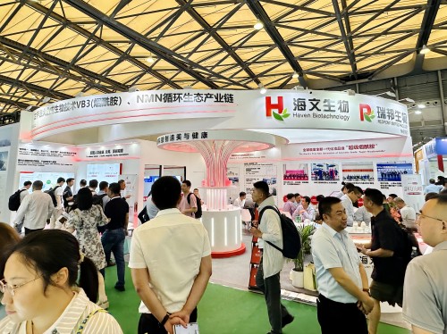 展会期间,海文生物展位人头攒动、热闹非凡。来自世界各地的食品保健、美妆个护、动物营养领域企业代表纷纷驻足,详细了解化妆品级“超级烟酰胺”、99.9%超高纯度NMN两大重磅新品的技术特点和应用优势,并对两大产品具备的高纯度、高安全性、高产能、全产业链稳定供应等多重优势和能够满足不同场景下的健康、美丽需求纷纷点赞。