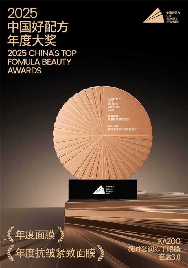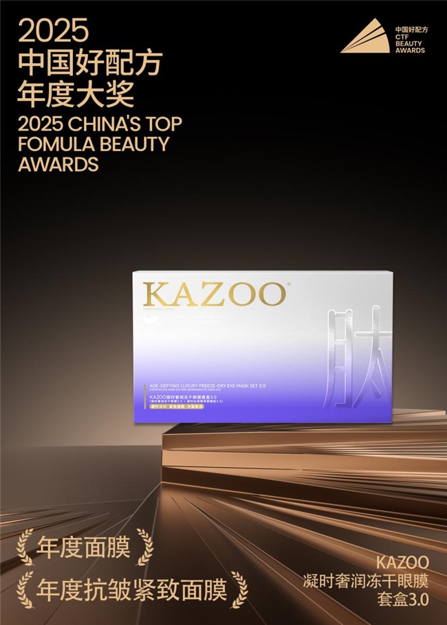 值得一提的是,此次荣获“中国好配方”年度大奖并非KAZOO可逐首次获得市场与专业的双重验证。根据沙利文(Frost & Sullivan)的独立认证,KAZOO可逐冻干眼膜在2024年已荣膺全国销量第一的桂冠,此次冻干眼膜3.0pro的重磅升级,无疑将进一步巩固其作为消费者眼部护理第一选择的领导地位,为追求高效抗老与品质生活的人群提供更优解。