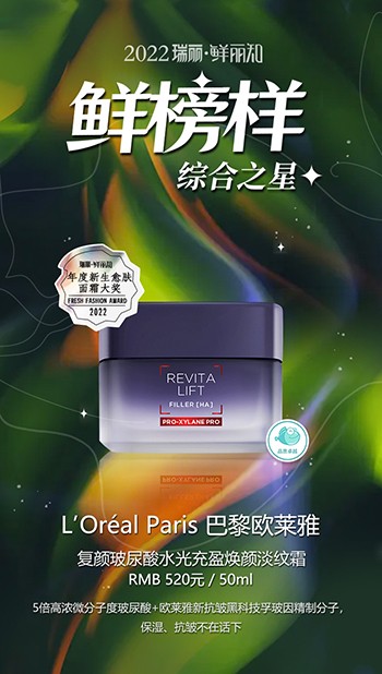 鲜榜样综合之星榜单 巴黎欧莱雅复颜玻尿酸水光充盈焕颜淡纹霜